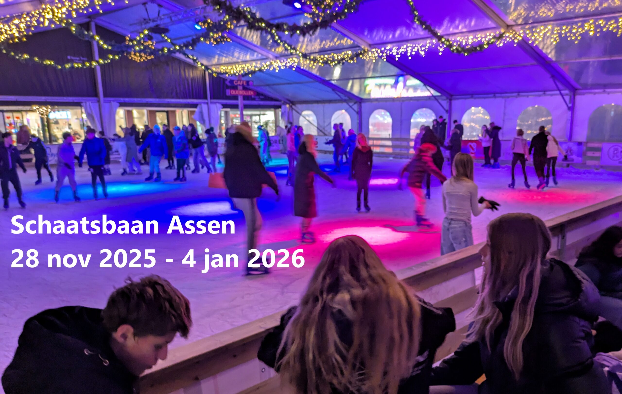 WintersAssen brengt heel veel winterpret naar de binnenstad van Assen. Schaatsen natuurlijk, maar ook curling arrangementen, een gezellig schaatscafé, muziek, en allerlei activiteiten voor families. U kunt elke dag schaatsen en op vrijdag avonden zijn er 1 euro p.p. DJ Avonden op het ijs voor de jeugd!